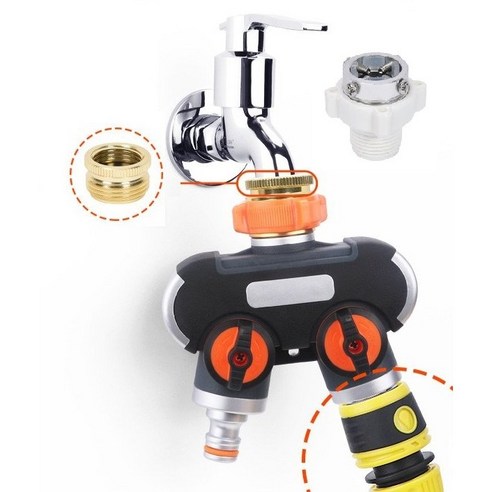 욕실 베란다 양갈래 세탁기 수도분배기 2구 수도꼭지 두갈래 아답터 2구 수도분배기+호스커넥터